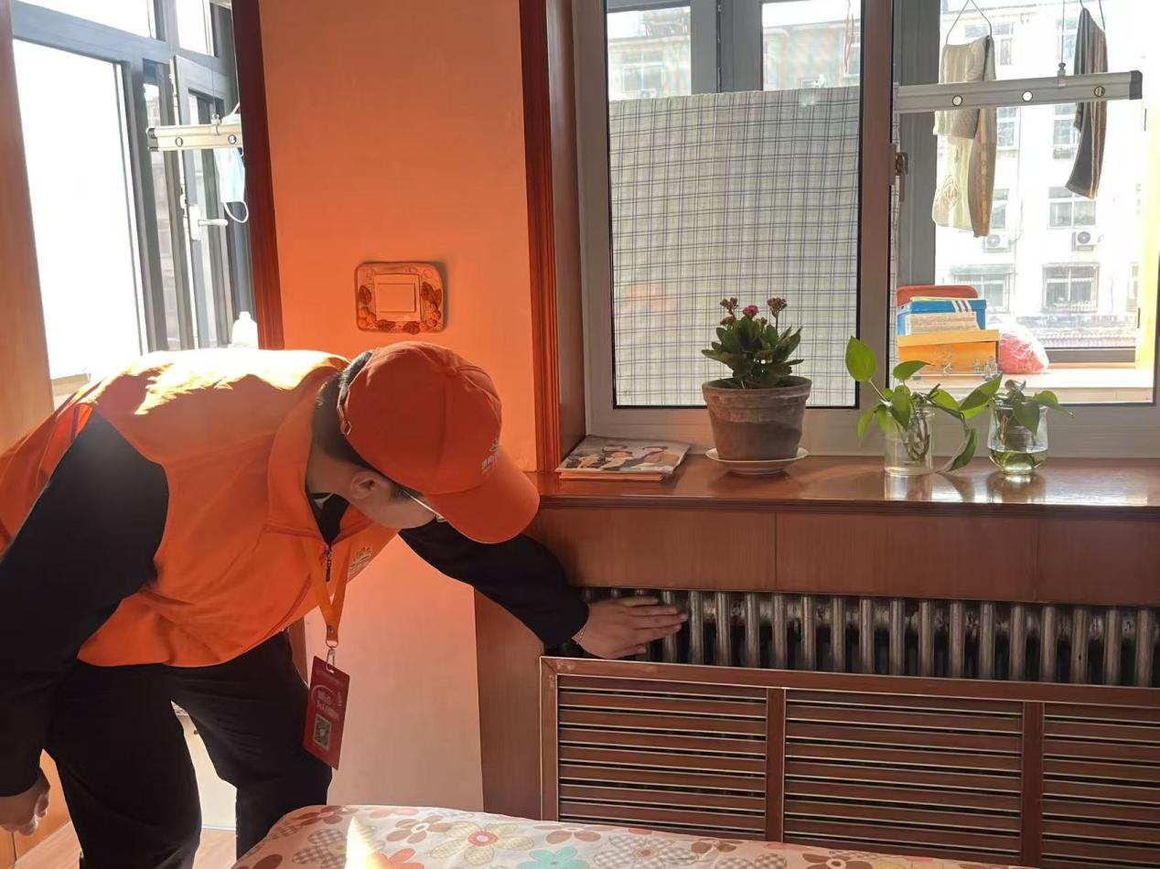 杨金澎负责的片区多为老旧小区,供热系统常面临特殊挑战。“串联系统最怕‘气堵’,顶楼积气,整栋楼暖气都可能从上往下凉。”谈起常见故障,他经验老到。春节期间,一旦接到整栋楼暖气效果不佳的反映,他的处置思路清晰果断:立即联系顶楼住户配合放气,同时赶往报修用户家中,对暖气片进行冲洗、放水、排气,一气呵成。这不仅解决了空气堵塞问题,也清除了管道中沉积的杂质,有效提升了供热效率。