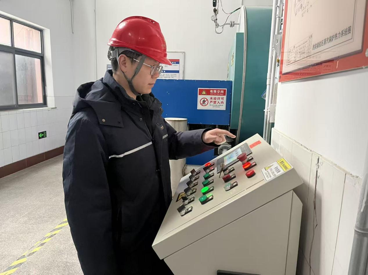 与往常一样,杨金澎的一天从晨会开始。召集值班师傅,梳理前一日用户报修情况,部署当日巡检重点——春节值班的日常,严谨如常。“越是节假日,安全弦越要绷紧。”每日晨会,安全总是他最先重视的事项。随后,他带领团队投入紧凑的工作:优先处理用户家中暖气不热的报修,入户排查、排气冲洗;同步展开对锅炉、蒸汽管线、燃气管线、换热站及各类压力、温度仪表的系统性巡检。手持测温枪检测循环泵温度是否超标,查看阀门状态是否完好,成为他节日里重复却至关重要的动作。
